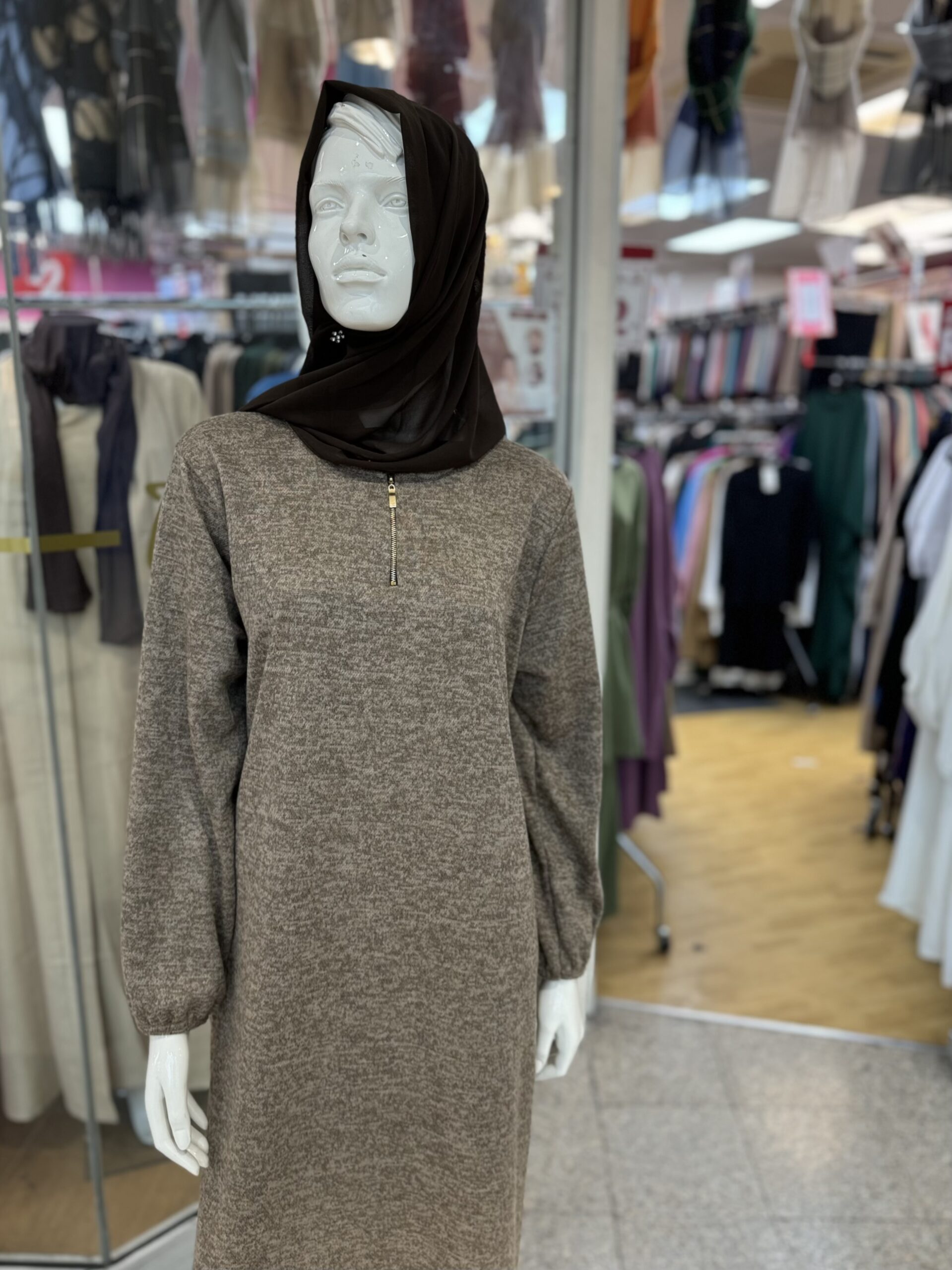 • In muted, earthy tones like rich grey and warm beige, this abaya pairs beautifully with both neutral and bold accessories, offering versatility for both everyday wear and special occasions. Whether you’re running errands or attending an event, the Autumn/Winter Zip Abaya is your perfect go-to for staying stylishly modest through the season. 🍃✨
