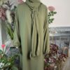 - With an attached hijab, it offers convenience and style in one. Its 56-inch length provides ample coverage, suitable for both daily wear and prayer. Whether you’re dressing up for an occasion or seeking solace in prayer, this abaya is a perfect choice.