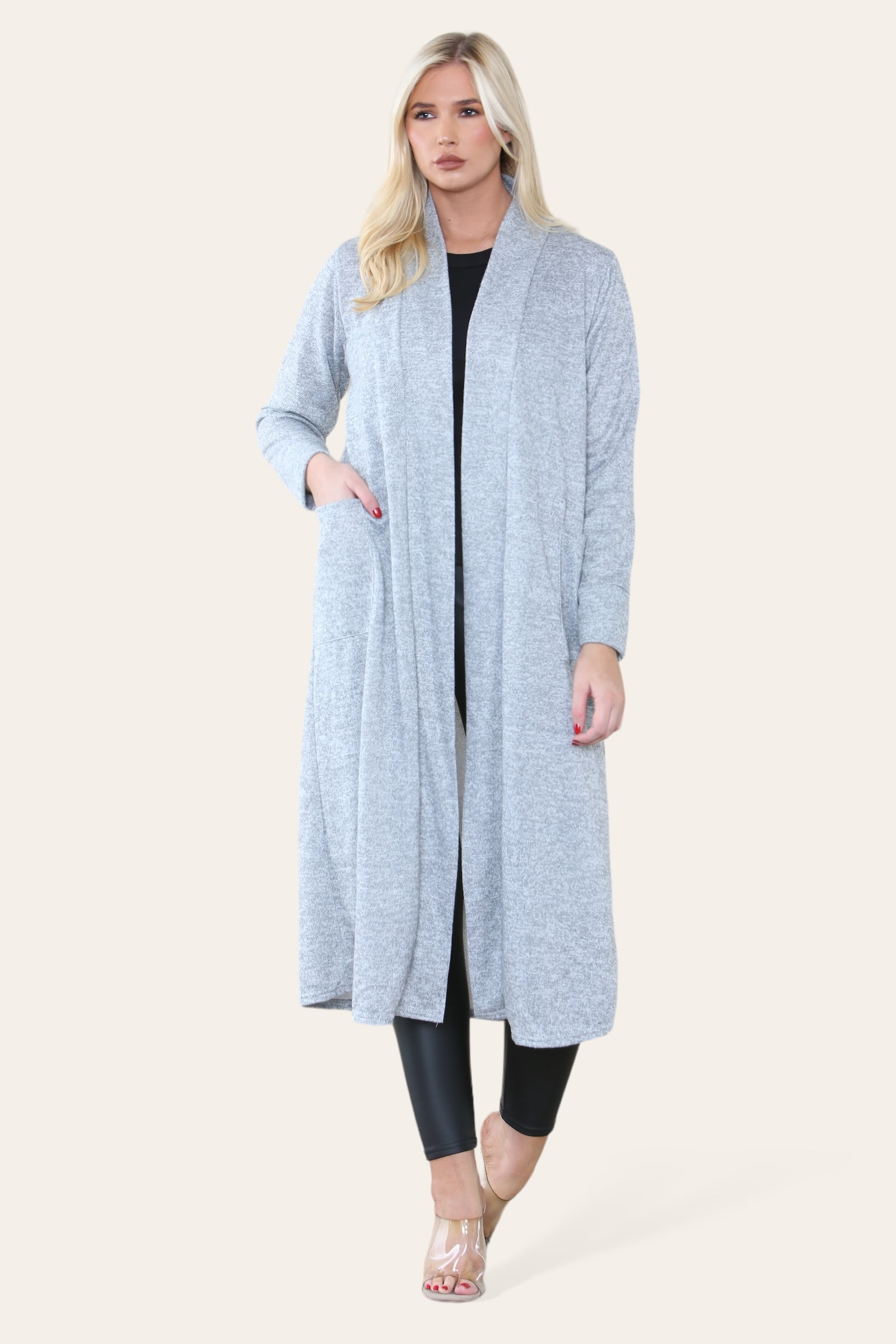 Plain Women’s Long Knitwear Cardigan with Pockets for Comfortable All-Season Fit