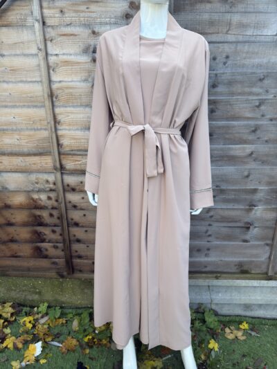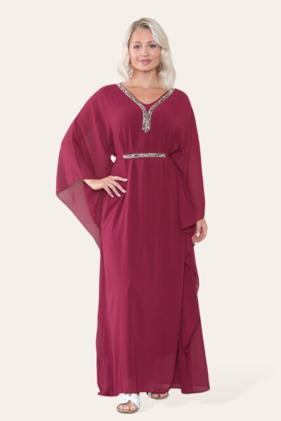 £8.99Original price was: £8.99.£7.99Current price is: £7.99.Chic Chiffon Abaya – Sophisticated Muslim Dress with Embellished Neckline and Belt